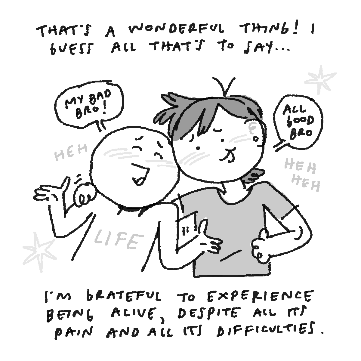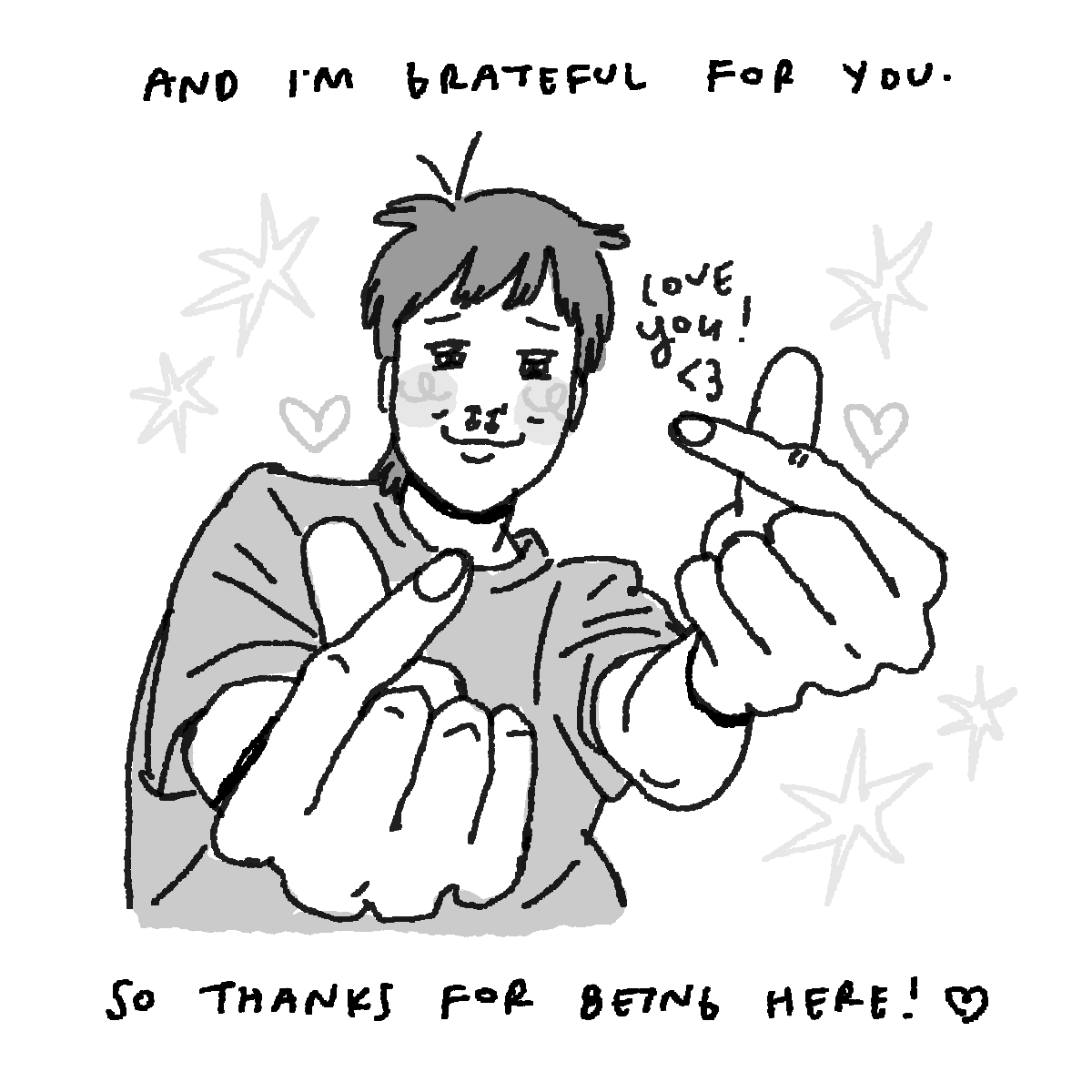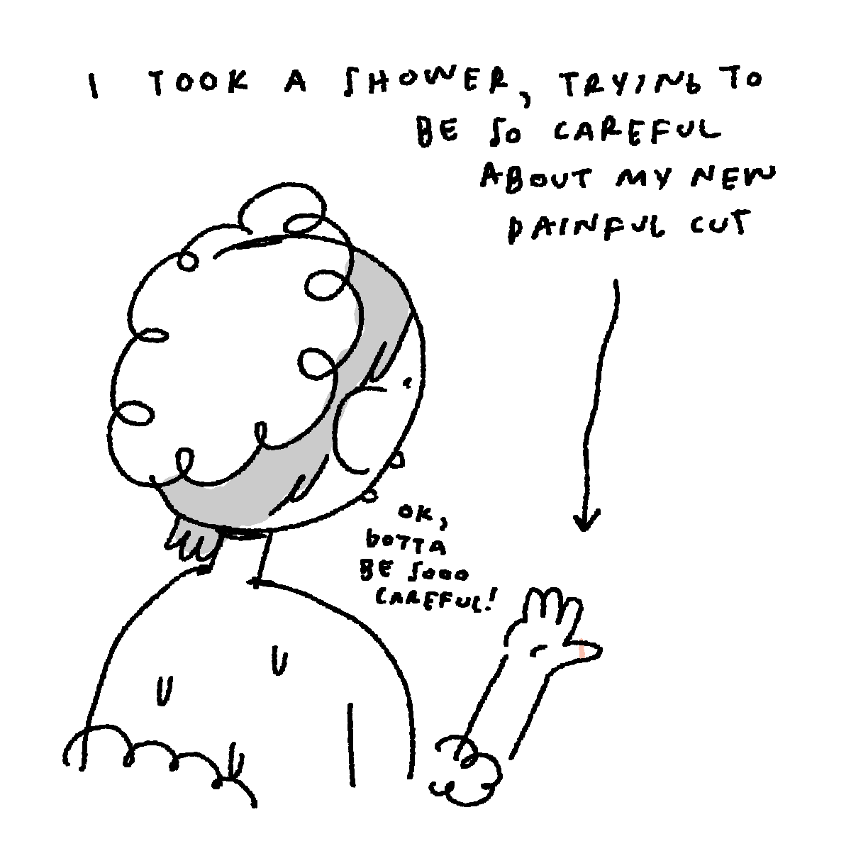 Weirdly enough, it’s my most popular comic on instagram… the second most popular being the one about how I ended up in the hospital a bunch for my neck back in January. It makes me wonder if people either resonate a lot with or just enjoy content about uhhh pain and suffering? One of my coworkers previously mentioned that he posts videos on tiktok a lot, I think he used to be a teacher or something? And the videos where he talked about his negative experiences popped off way more than the ones that were more positive. He didn’t like that social media pushed him to be more negative, so he stopped doing it. I think I’m noticing a pattern of my more negative leaning comics or negative experiences reaching a broader audience. Which is a shame! But I don’t care about the algorithm and I’ll keep making comics about whatever I want lmao!!! And I hope more of them are about more positive experiences, considering they’re all slice of life comics. I am manifesting more good things happening to me basically- please please please.