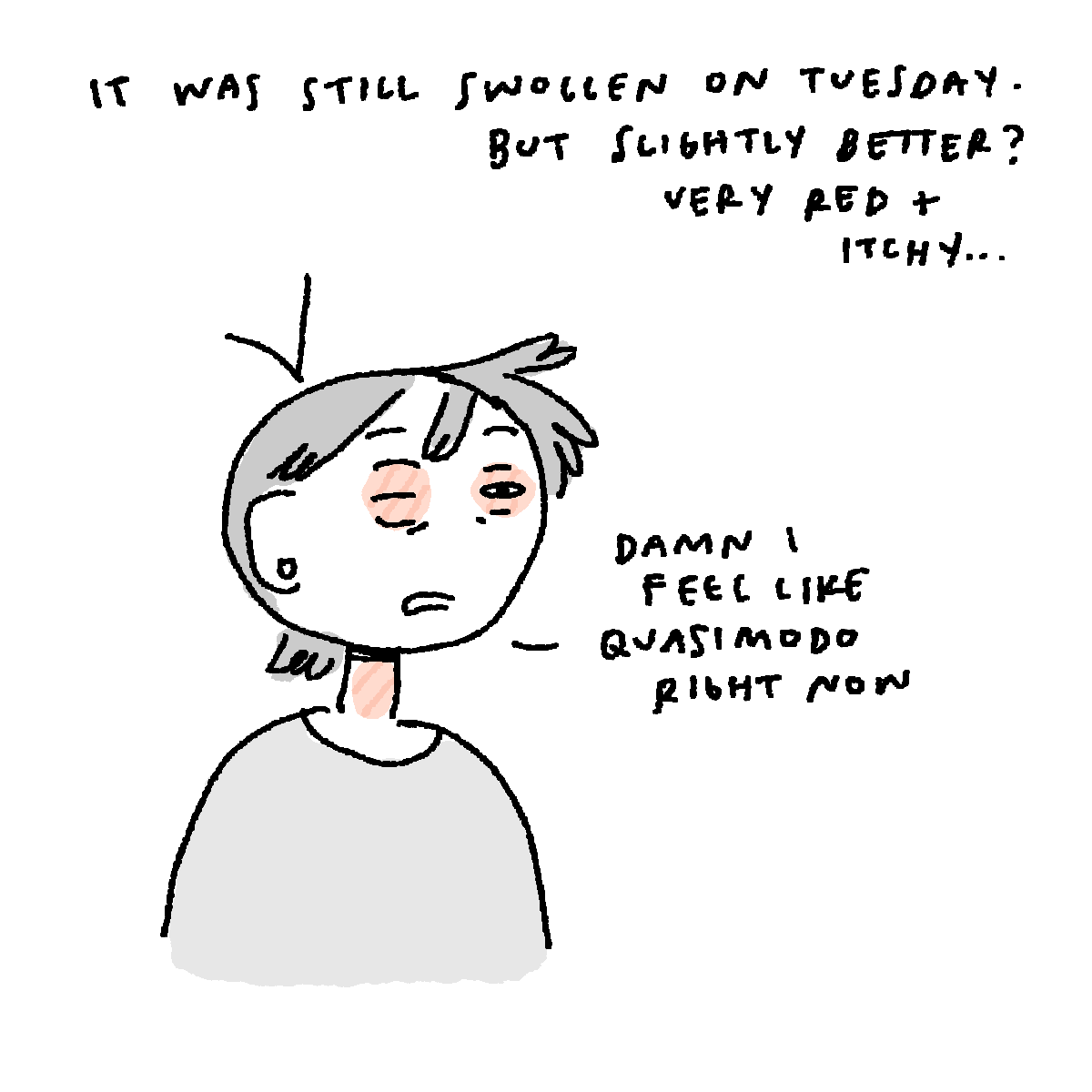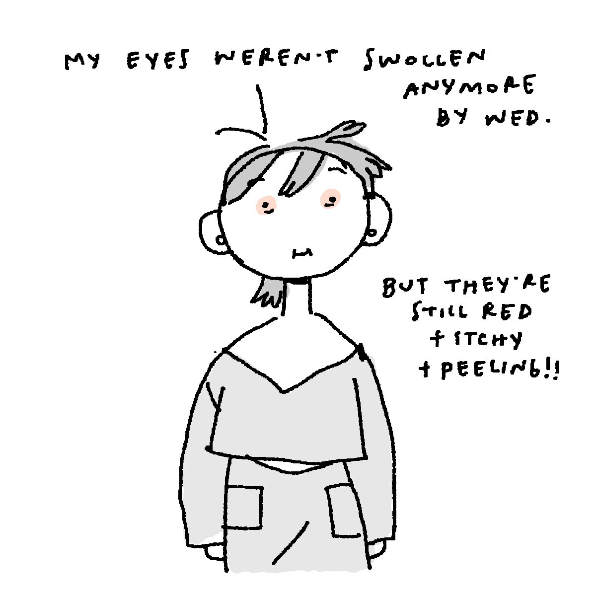 My eyelids are still swollen and red and itchy. And I’m having a really hard time with my health these past few weeks. Honestly, this whole year has been challenging in regards to my body. I’ve been pushing myself a lot despite how weary and in pain I am. Trying to rest in between work, popups, obligations. I still want to see my friends! But sometimes my skin feels like it’s covered in needles and I’m on fire. Before anyone gives me advice on how to fix my health, trust me- I’ve tried and continue to try everything. I’m in immunotherapy and (as minimally as possible) using steroids. I’m taking antihistamines and just… trying my best! Drinking a lot of water, trying to lotion up and shit. I’m just complaining right now, cause being ill and feeling bad all the time sucks. I’d do just about anything to wake up feeling normal and well. I’m sure the day will come when that will be true. I’m hoping that day will come!
