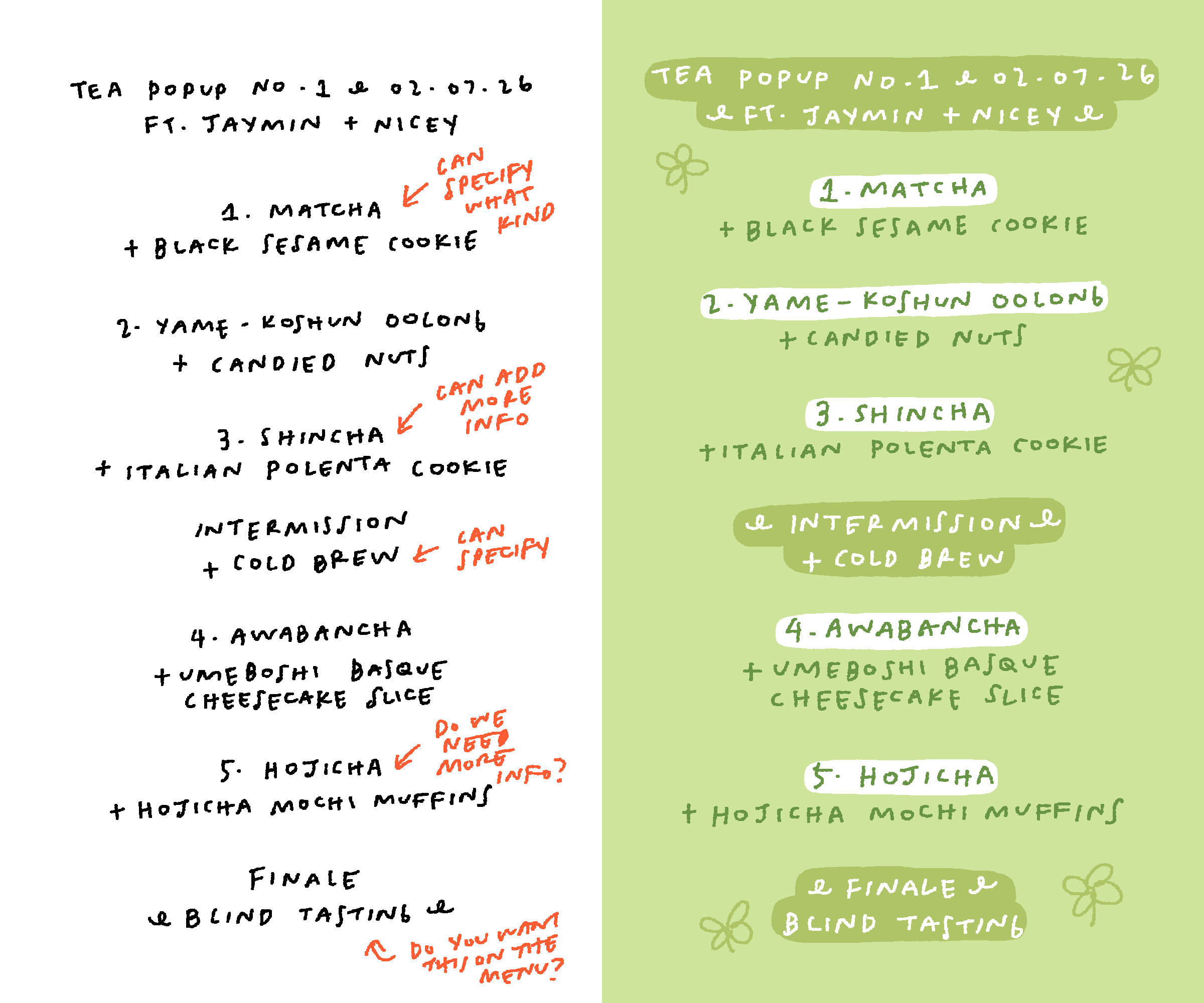 It’s kind of funny reminiscing on this now about two months later! This was definitely a core memory for me and I’m incredibly grateful and honored to be part of such a memory and experience!! This was also a great test run for potential tea popups in the future. I think we learned that we need to shrink down the menu a bit and limit to 4 different teas instead of the 6 courses we had planned for this. I would also maybe try to include a savory heavy thing for people to eat so the caffeine doesn’t absolutely destroy everyone sitting with us for a few hours. This omakase tea experience lasted about 3 hours I think? That’s a pretty long time to be somewhat hungry and overly caffeinated. Almost nauseating! Lots to think about and adjust for the future… but I hope we get to do something like this again someday!