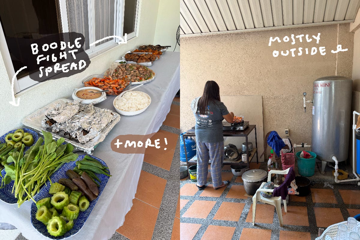 We spent the beginning of the week in Manila, and then took a p2p bus to Pampanga cause a lot of my family on my mom’s side is in San Fernando (a city within the province of Pampanga). Then bussed back to Manila in preparation to fly out to Vietnam. I got to hang out with my ate once each time we were in Manila! We walked around SM mall of Asia and she joined my family for dinner, so my mom got to meet her, too. After dinner she showed us (me + lil bro) the stores she helped design since she’s an architect. They scanned my feet at the Hoka store and I got $150 shoes for around $80… very cool and epic. We got froyo at ilao ilao which is now my favorite place to go get dessert in the Philippines- and when we got our froyo, we ended up with the same toppings!! My brother tends to get the same thing as me (familiar feeling) but for me… to get the same thing as my sister… kind of funny actually. We are truly siblings. After I left for Pampanga, Berlin (dropping the honorifics for the readers’ ease) flew out to Cebu for work, so when I came back we exchanged pasalubong. She got me dried mangoes, dried squid, and otap! We gave her some macadamia nut chocolates and dubai chocolate stuff from the US. I met her mom and her two kids- my niece and nephew! And we got… ilao ilao again LMAO. And walked along the seaside. It was nice! We’re planning to meet up again when I return to Manila for week four of our SEA trip, before we finally fly back to the US.